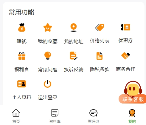 这里展示的模块包括“我的收藏”、“我的地址”和“常见问题”等十几种功能,这些功能能够让用户更快捷地进行账户维护和操作,提高使用效率。